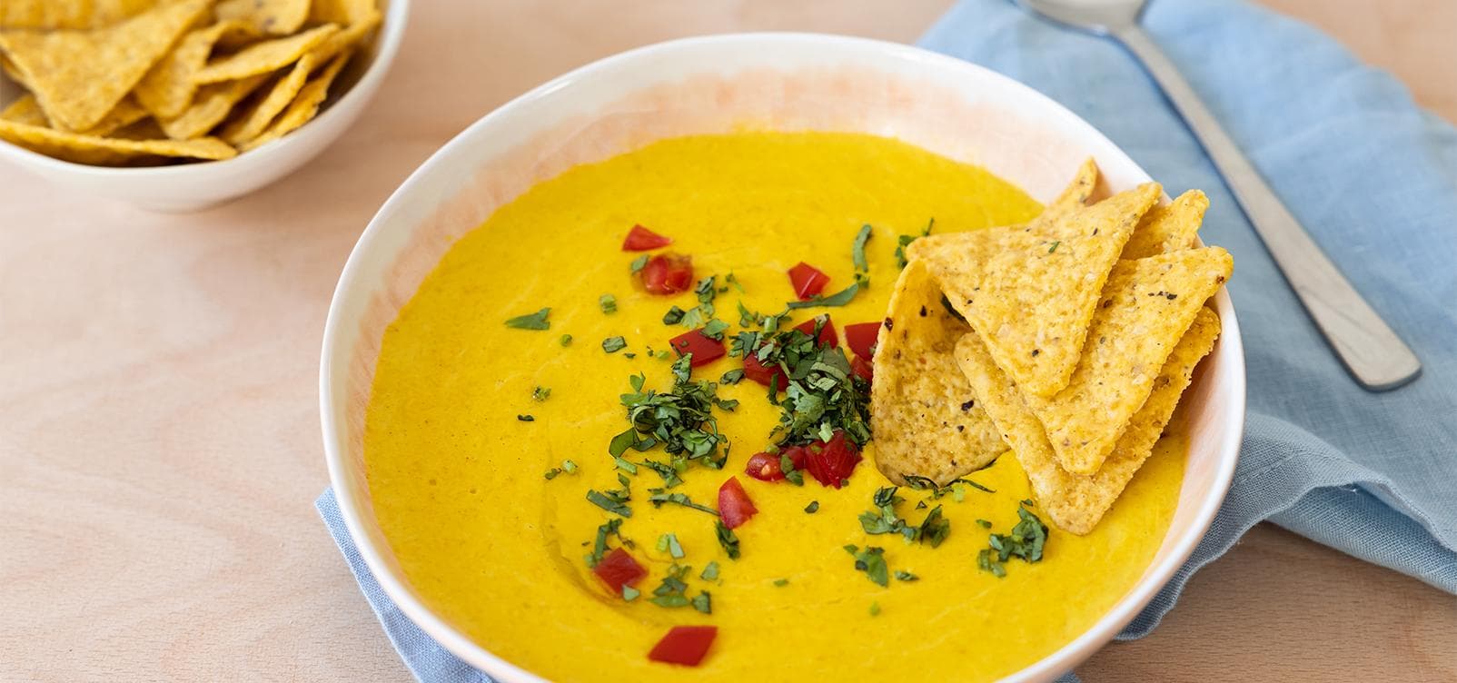 Die Zubereitung einer klassischen Suppe dauert dir zu lange? Probiere es doch mal mit einer kräftigenden Paprika-Mais-Suppe. In nur 15 Minuten zauberst du dieses Blitzgericht, das optisch und geschmacklich einiges zu bieten hat. Unser Tipp: Serviere die Suppe mit Nachos - das bringt Pepp in das Gericht und macht es zu einem besonders crunchigen Erlebnis.