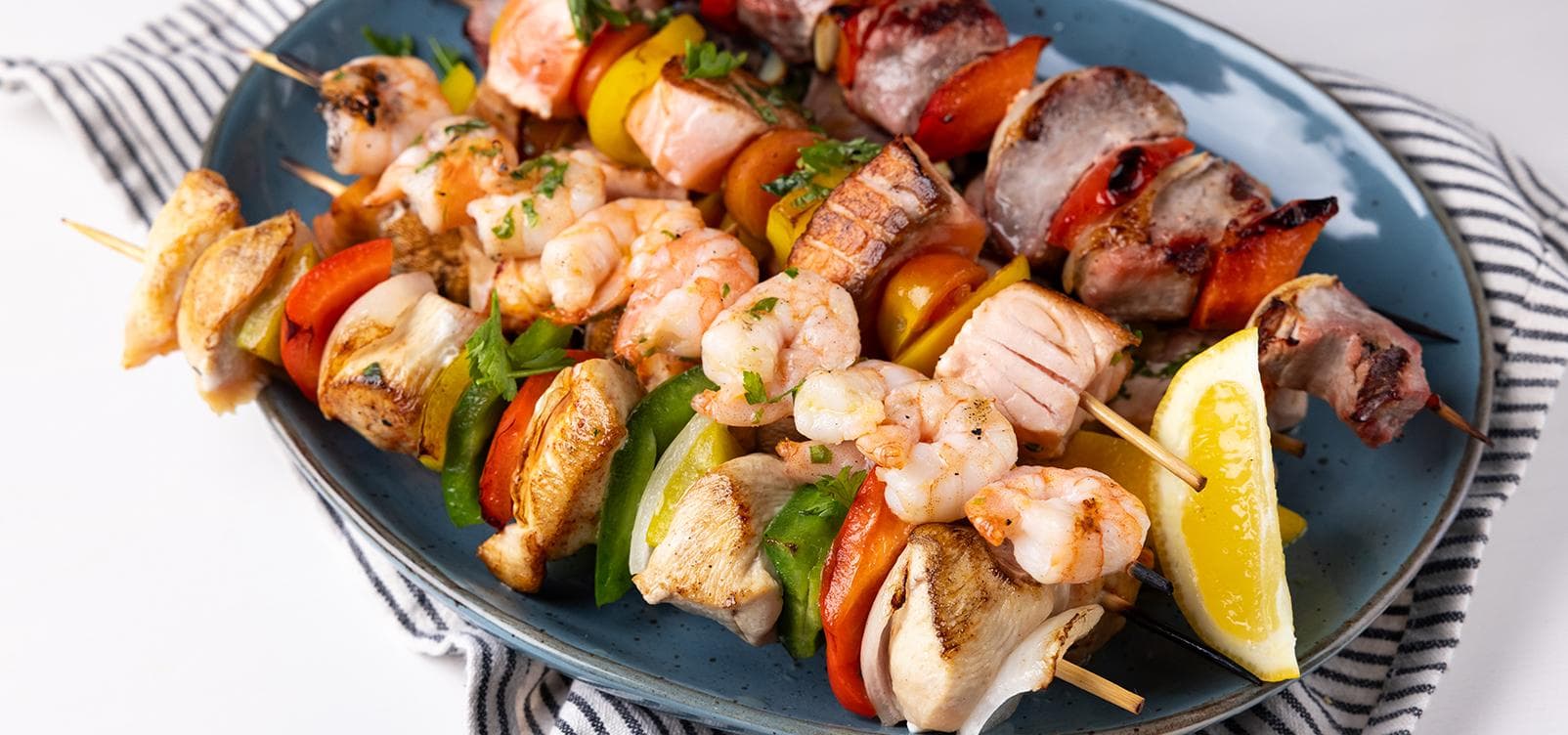Der Klassiker beim Grillen: Spieße! Mit dieser cleveren Spieß Variation bietest du deinen Gästen eine Auswahl, die mit Sicherheit jeden Geschmack trifft. Alles, was du dafür benötigst - von Huhn, über Schweinelungenbraten, bis hin zu Lachs und Garnelen - findest du garantiert günstig im clever Sortiment.