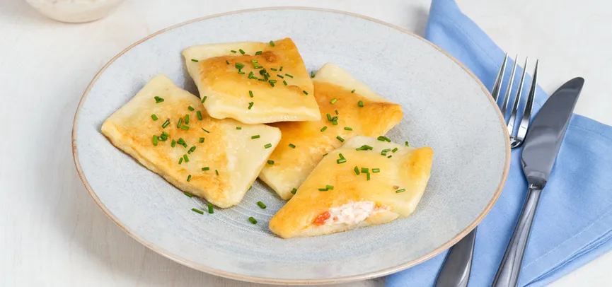 Samstag: Erdäpfeltascherln mit Frischkäsefüllung