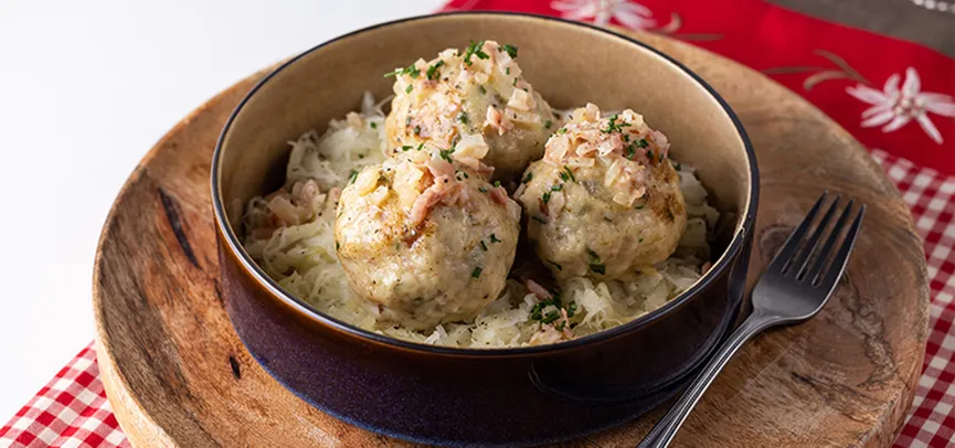 Traditionell und herzhaft sind diese Speckknödel mit Sauerkraut! Die deftigen selbstgemachten Knödel schmecken fantastisch und erinnern uns an Omas Küche. Ein echter Klassiker für alle, die eine sättigende Hausmannskost für 1 € pro Portion lieben.