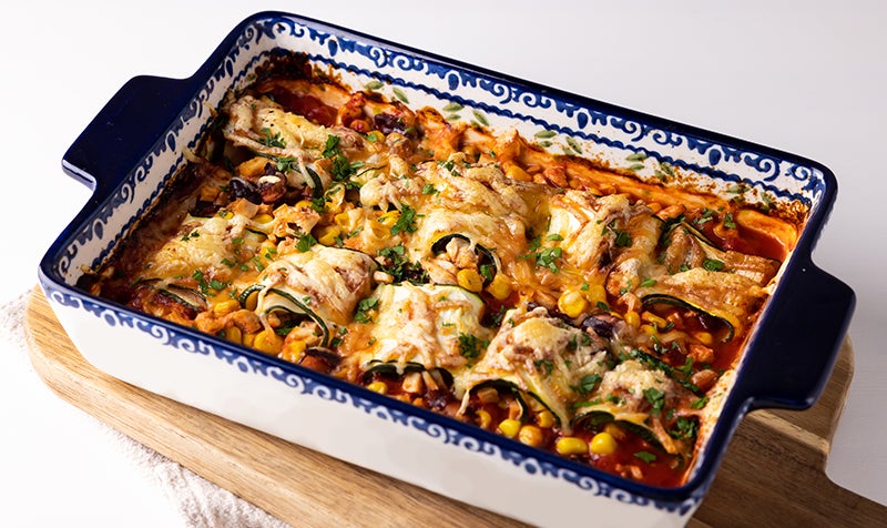 Für ein bisschen mexikanisches Flair in der eigenen Küche sorgen diese gschmackigen Zuchini-Enchiladas! Statt klassischen Tortillas kommen feine Zucchinistreifen zum Einsatz, die mit einer würzigen Sauce gefüllt und großzügig mit clever Emmentaler überbacken werden - so entsteht eine köstliche goldbraune Käsekruste. Ein sättigendes, preiswertes Gericht, das garantiert für Begeisterung sorgt.