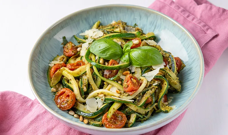 Wer Lust auf eine leichte und originelle Nudelalternative hat, wird von diesen Pesto-Zoodles aus clever Zucchini begeistert sein! Denn mit Hilfe eines Sparschälers kommt die Zucchini in die typische Spaghetti-Form! Diese schmackhafte Variation der klassischen Pasta harmoniert wunderbar mit clever Pesto und clever Grana Padano. Ideal, für alle, die es unkompliziert, garantiert günstig und trotzdem besonders mögen. Und hungrig geworden? Ab zu BILLA oder BILLA PLUS, besorge dir die clever Zutaten, koche das Rezept nach und genieße es!