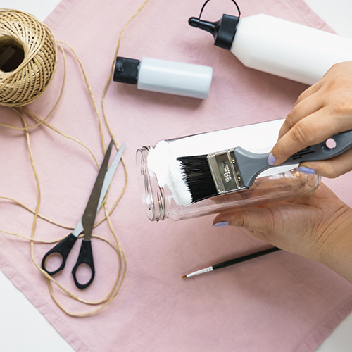 - Anschließend das Glas mit Acrylfarbe bemalen und trocknen lassen.