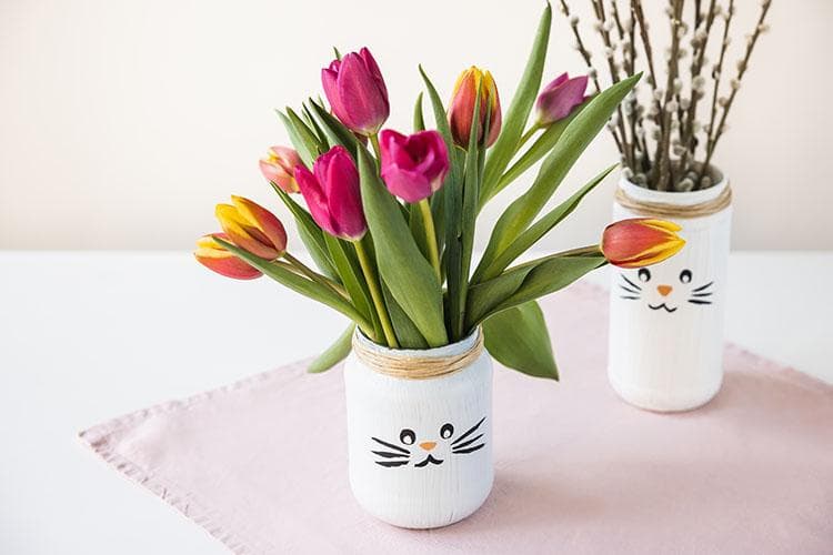 Oster-Deko gefällig? Wir zeigen dir, wie du mit wenig Schritten aus einem leeren Glas eine süße Hasen Vase zauberst.