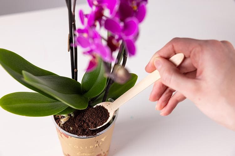 - Sobald der Kaffeesatz getrocknet ist, kann er als natürlicher Dünger unter die Erde gemischt werden.