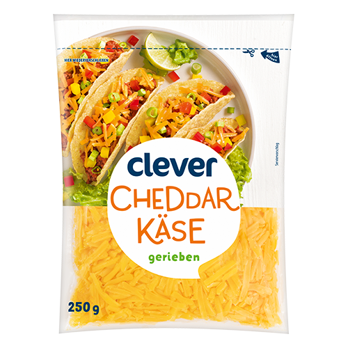 Cheddar (MILCH, Milchsäurebakterienkulturen, mikrobielles Lab, Salz unjodiert, Farbstoff: E160a), Maisstärke.