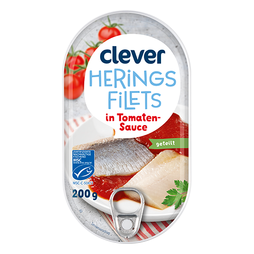 Die clever geteilten Heringsfilets in Tomatensauce sind bereits portionierte Filetstücke, eingelegt in eine fruchtige Tomatensauce. Durch die praktische Portionsdose eignen sie sich ideal für eine schnelle Jause oder als Mahlzeit zum Mitnehmen. Die Heringsfilets sind reich an wertvollen Omega 3 Fettsäuren und stammen aus MSC zertifizierter Fischerei.