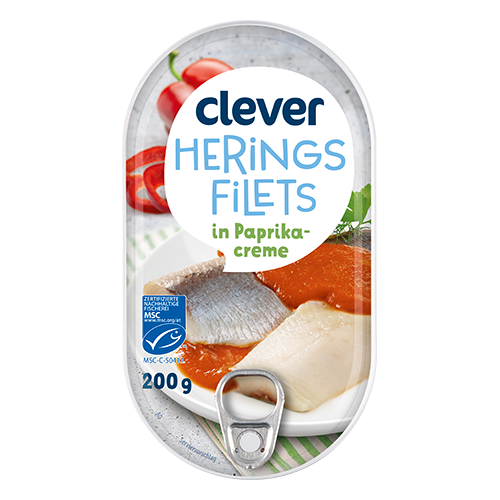 Die clever Heringsfilets sind in einer cremigen, mild-würzigen Paprikasauce eingelegt.
