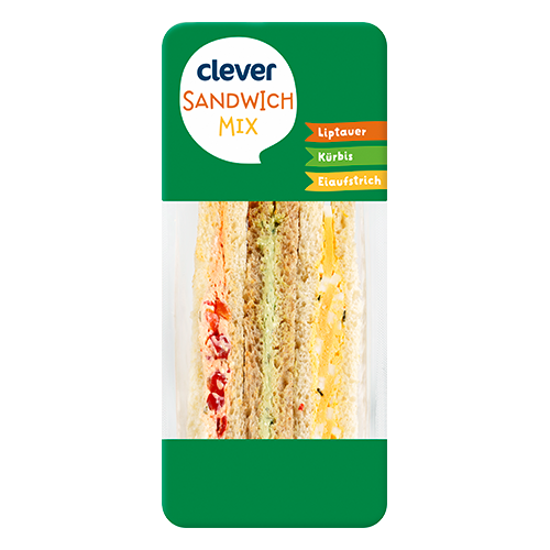 Der clever Sandwich Mix Liptauer-Kürbis-Eiaufstrich vereint 3 Sandwich Sorten in einem praktischen Set - ideal für unterwegs oder die schnelle Jause.