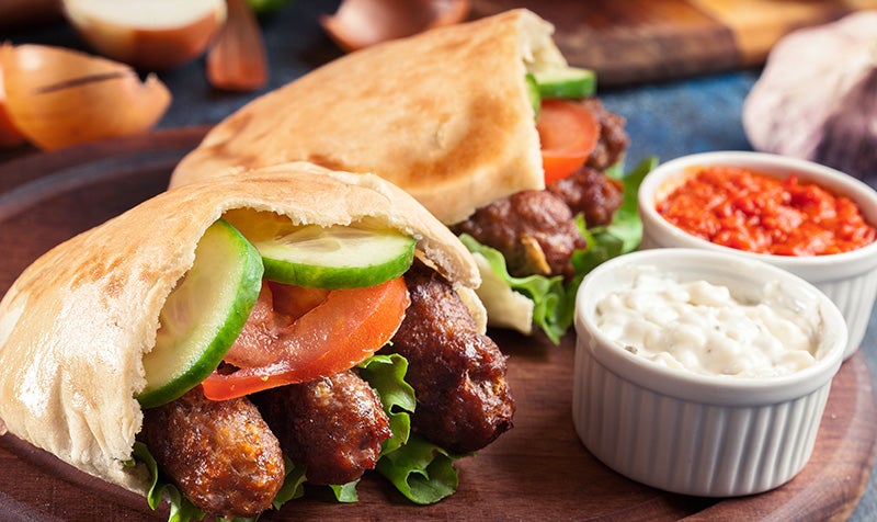 Zutaten für remove add Portion(en)clever Zutaten:16 clever Cevapcici0.5 Packungclever Pommes Frites4 clever Tomaten0.5 Packungclever Blattsalat Mix1 Schussclever Mayonnaise1 Schussclever Ketchup1 clever ZwiebelWeitere Zutaten:4 StückPitabrot Ajvar1 GurkeZubereitung