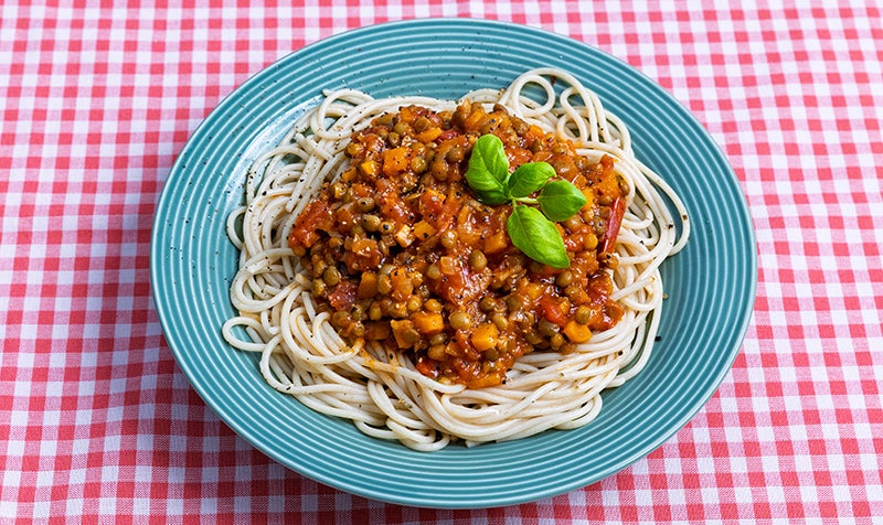 Währenddessen Spaghetti nach Packungsanleitung kochen.