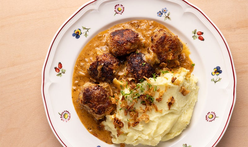 Gefüllte Fleischbällchen mit Erdäpfelpüree