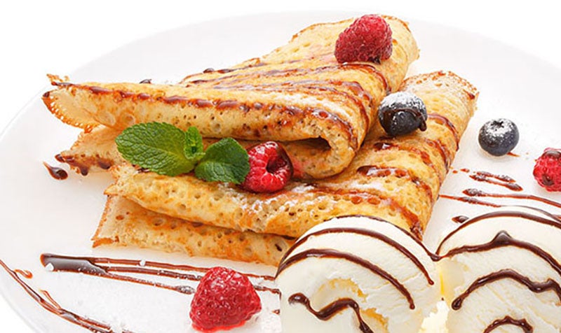 Palatschinken mit Haselnusscreme und Vanilleeis