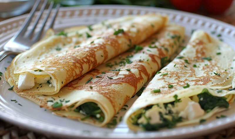 Palatschinken mit Spinat und Käse