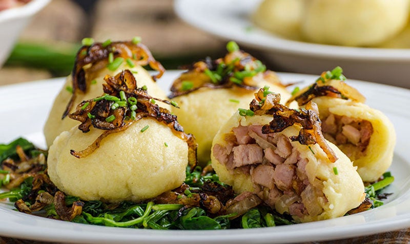 Selchfleischknödel mit Kernölsalat