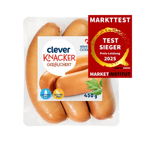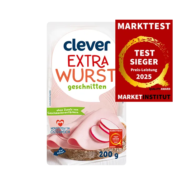 Im Rahmen des branchenbezogenen Markttests wurde eine Vielzahl an Marken in der Branche Wurstmarken getestet. clever erzielt das beste Preis-Leistungsverhältnis in der gesamten Branche und ist Testsieger.