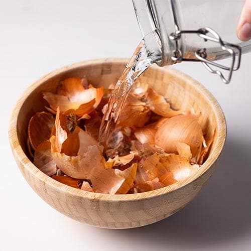 - Die Zwiebelschalen in eine große Schüssel mit Wasser geben und waschen.